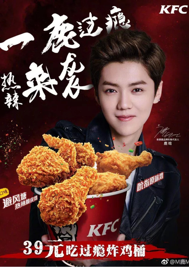 和专情的麦当劳对比,肯德基不是一般的风流。3年左右,换了8位代言人,个个都是顶流明星:王一博、鹿晗、黄渤、黄子韬、王俊凯、王源、周冬雨等等。其中,代言时间最长的是鹿晗,不过也就一年多时间。