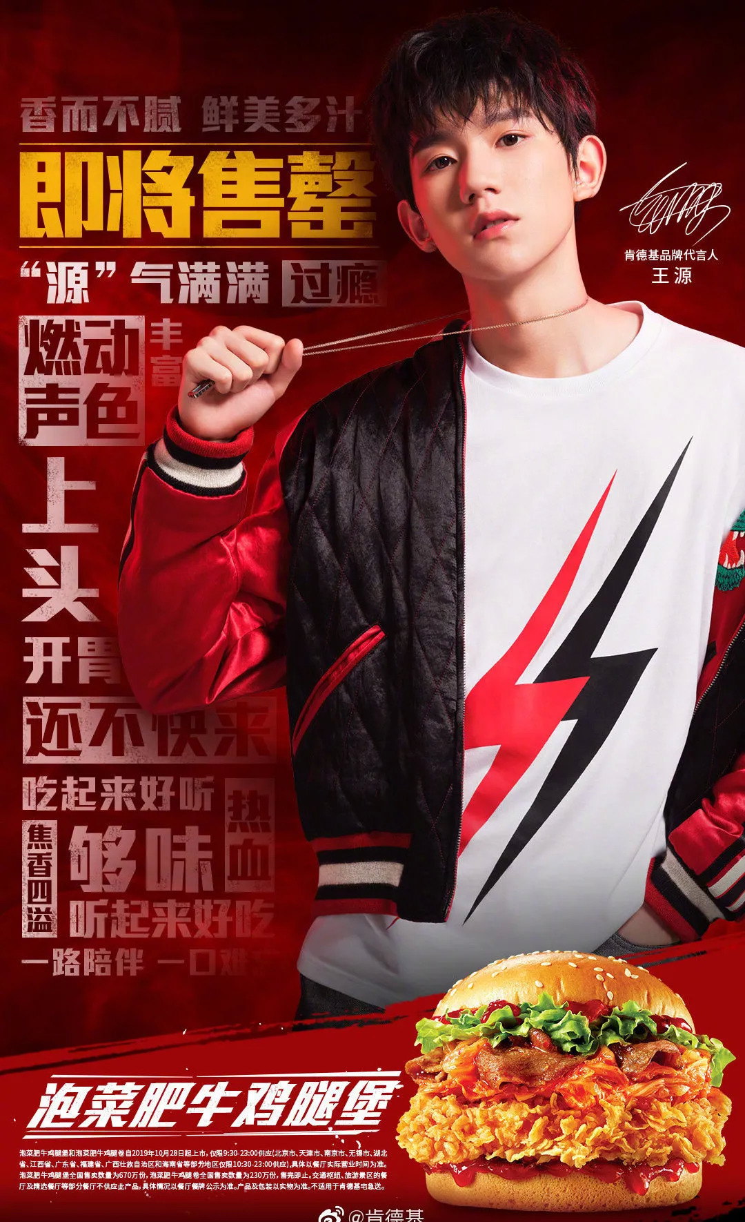 此外,肯德基的代言人不只代表了品牌,更是绑定了产品,比如王源主推“泡菜肥牛鸡腿堡”,王俊凯宣传航天季“Wow桶”。因此,上新品的时候,新人就有了“上位”的机会。