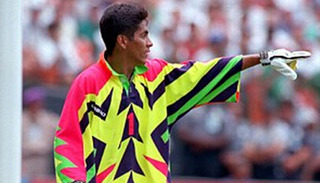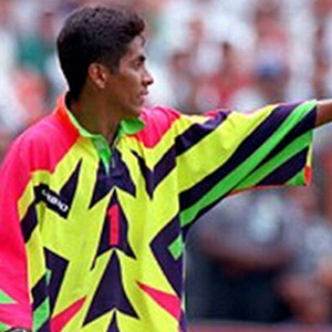 1.前墨西哥门将豪尔赫·坎波斯热衷于自己设计战袍。在1994年美国世界杯期间,他想出了这个令无数人感到反胃的设计:他一定是从1967年的音乐剧《约瑟夫的神奇彩衣》中得到了这个将绿色、黄色、蓝色、粉色和橙色混合到一起的灵感。