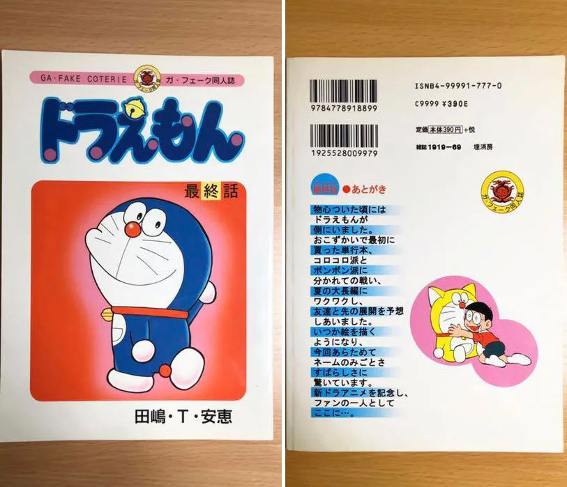 2005年,一位男性漫画家以“田嶋·T·安恵”为笔名,创作了一部名为《哆啦A梦最终回》的同人漫画。除了在Comic Market上390日元的价格销售以外,这部同人漫画作品还进入了专门售卖同人志的蜜瓜书店,以420日元(含税5%)的价格贩售。