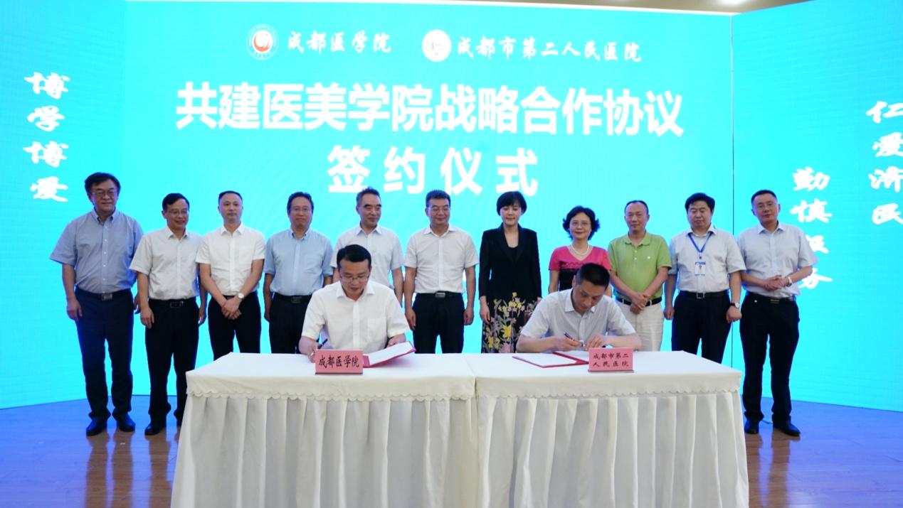 2020年6月医疗美容科借助成都市市委市政府大力建设“医美之都”的契机下,为更好的担负起公立医院的社会种责任和使命,抓好医美人才基础,培养融合医学、美学和艺术相关专业人才。瓦庆彪主任介绍:“在二医院党政班子和成都医学院党政班子的支持下,成都市第二人民医院与成都医学院签约共建“医美学院”,将着力于四川医疗美容学科专业建设、医美人才培养、医美科技创新项目落地、创建国家级医美专科及西南地区区域医美中心,将借此开展高质量的临床科学研究,加强区域内基层医务人员的培训,输送优质医美人才,期待为成都建设医美之都、促进本市皮肤美容产业的快速发展贡献微薄之力。”