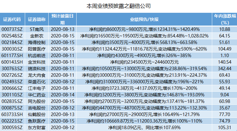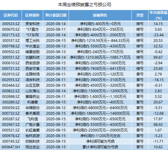 根据计划,本周(8月10日-15日)将有259家上市公司披露2020年中期业绩报告。