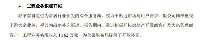 未来,公司一方面将以“好莱客”品牌继续深耕家居零售市场,另一方面将以千川公司品牌积极开拓大宗工程业务,助力好莱客品牌进军B端市场。从“ALL IN”零售端,到兼具B、C端业务。