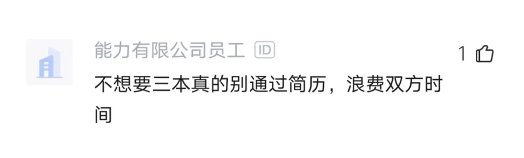 有网友称,如果嫌弃三本生就不要通过其简历,浪费双方时间。