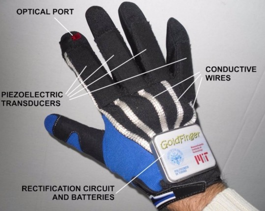 【“金手指”智能手套从手指活动中获取能量】由Giorgio De Pasquale领导来自意大利都灵理工大学和美国麻省理工的科学家的团队带着“金手指(Goldfinger)”——一款支持简单手势操作的自我供电的手套—出现在人们的视线中。尽管它的外形看起来跟普通的滑雪手套有些相像,但“金手指”的里面却大有乾坤,手套里边安装各种各样的电子部件和机械部件。它可以在数据输入和发指令的过程中,为人们提供更加舒适的途径。“金手指”通过无线跟电脑或其他设备连接,其运行所需的能源来自手指的运动,这样设计的好处是可以减轻手套重量以及去掉繁琐的电线。另外,传感器、开关和线路被装入手套的织物里边可以让佩戴者感觉自己戴的就像是真正的手套。据了解,手套通过简单的手势操作对设备和系统进行控制。手套和光学追踪软件负责检测并翻译手指的动作。研发团队指出,“金手指”将能够在工业、医疗、虚拟现实领域找到应用前景。