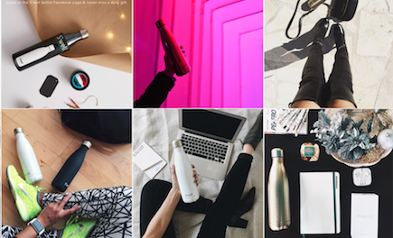 在销售渠道上,比起超市、大卖场这类的传统渠道,Sara选择进入高档百货商场或者是服装品牌的商店,类似Nordstroms、J.Crew。一开始的谈判颇为困难,毕竟这些商场从来没有卖过类似的产品,但好在S'well足够貌美,作为服饰配饰或者礼物产品在橱窗中亮相也颇有吸引力。“这样的渠道选择,可以让S'well与传统的保温杯区别开来。”Sara说。在产品宣传上,S'well的营销团队常常会把自家的产品与一些时尚单品摆在一起,类似口红、粉饼这些女生包包里常见的东西。