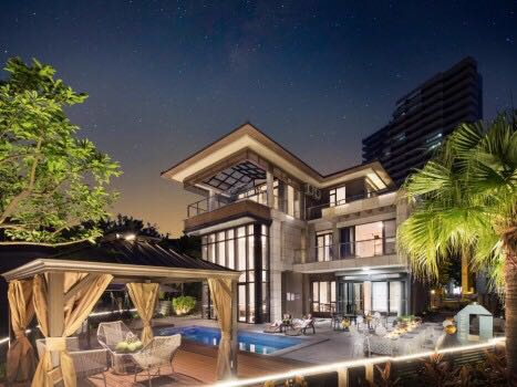 在别墅的玻璃泳池里享用漂浮下午茶,或者在漂浮床上尽情享受日光;