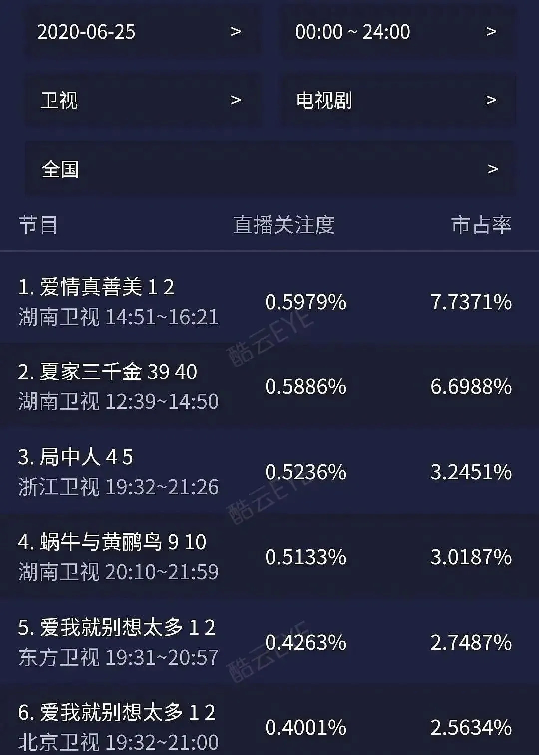 一直在闭关的唐嫣则凭借十年前的两部作品,扛起电视台收视率。今年6月,湖南卫视在下午档播出的《夏家三千金》《爱情真善美》,多次登上卫视收视率第一、二名的位置,市场占有率达其他黄金档新剧的两倍以上。由此不难看出,唐嫣的国民度和观众缘依旧抗打,除了是年轻一代的“偶像”,也深受中老年观众的喜爱。