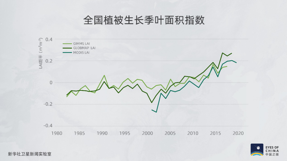 北京大学城市与环境学院教授朴世龙的研究显示:相较于上世纪八九十年代,中国“变绿”速度加快,而全球变绿趋势减缓,这和中国植树造林等生态工程密切相关。
