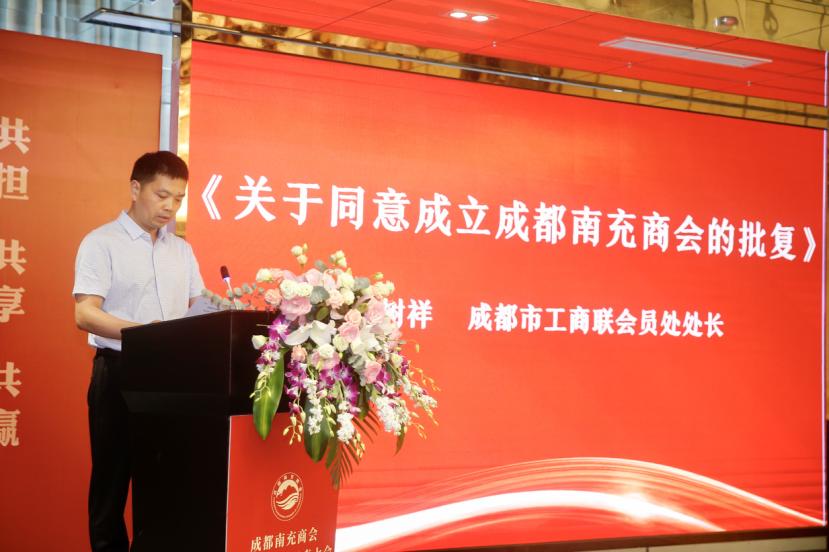 成都市工商联会员处处长高树祥宣读《关于同意成立成都南充商会的批复》。