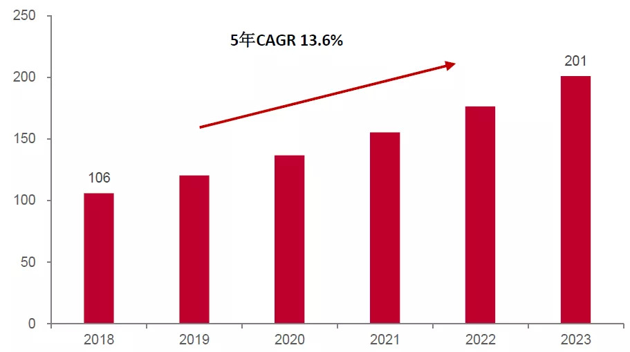 正如前文所述,AI技术的渗透将成为视频监控新的增长引擎。IDC预计,国内视频监控市场规模将从2018年的106亿美元增长到2023年的201亿美元,五年复合增速13.6%,若加上非视频、运营以及安防工程,则整体安防行业规模将毫无疑问突破万亿。