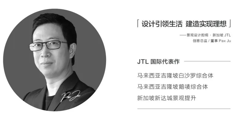 在JTL团队看来,景观不止是植物围合的空间,更是城市与自然、自然与人、人与生活的连接纽带,一个好的住宅景观,反映的是自然环境与居住生活之间的一种默契。在中海·新芝源境,以“临水之境 都市溯源”为主题,于城市空间中呈现山水融于生活的体验,营造温馨的都市时尚感与都市度假氛围,让闲适重回生活,打造理想的新加坡式人居环境。