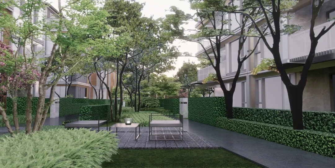 宁波街巷文化在叠墅区得到了充分体现,在有限的空间里,以景观手段最大化提升墅区的品质感,用简约的现代景观语言打造精致、温馨的宅间休闲,营造舒适、轻松、隐贵的景观氛围,唤起记忆中的美好生活场景。