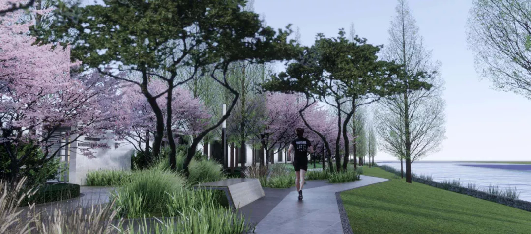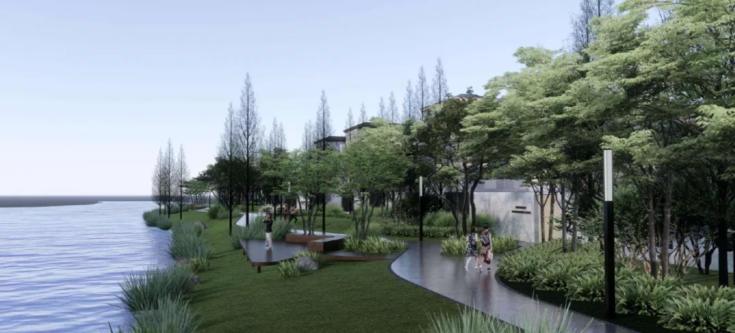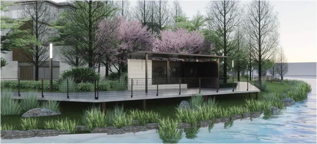 宁波水文化流淌古今,翠柏河与蔡江河的天然交汇,水韵宁波于此再现,JTL以自然的设计手法,打造滨水休闲空间,将宁波和水的关系,转化为人和场地的关系,通过水使人和场地产生互动关联,打造独具水韵文化的景观场地氛围。