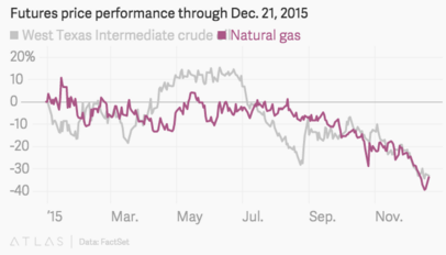 过去一年,天然气的表现比石油还差劲。经历了夏季,高产量转化成不断增加的库存。这原本是要为寒冬做准备,但由于历史性的厄尔尼诺现象,情况在秋季变得更为糟糕。只到近来美国东部的寒流才得以使价格略有复苏。