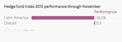 巴西并非拉美地区唯一一个处境艰难的经济体。经济困境从委内瑞拉蔓延至阿根廷。研究公司HFR跟踪了107个关注拉美的对冲基金并编制了一项指数。截至11月,该指数就已经下跌了超过18%。