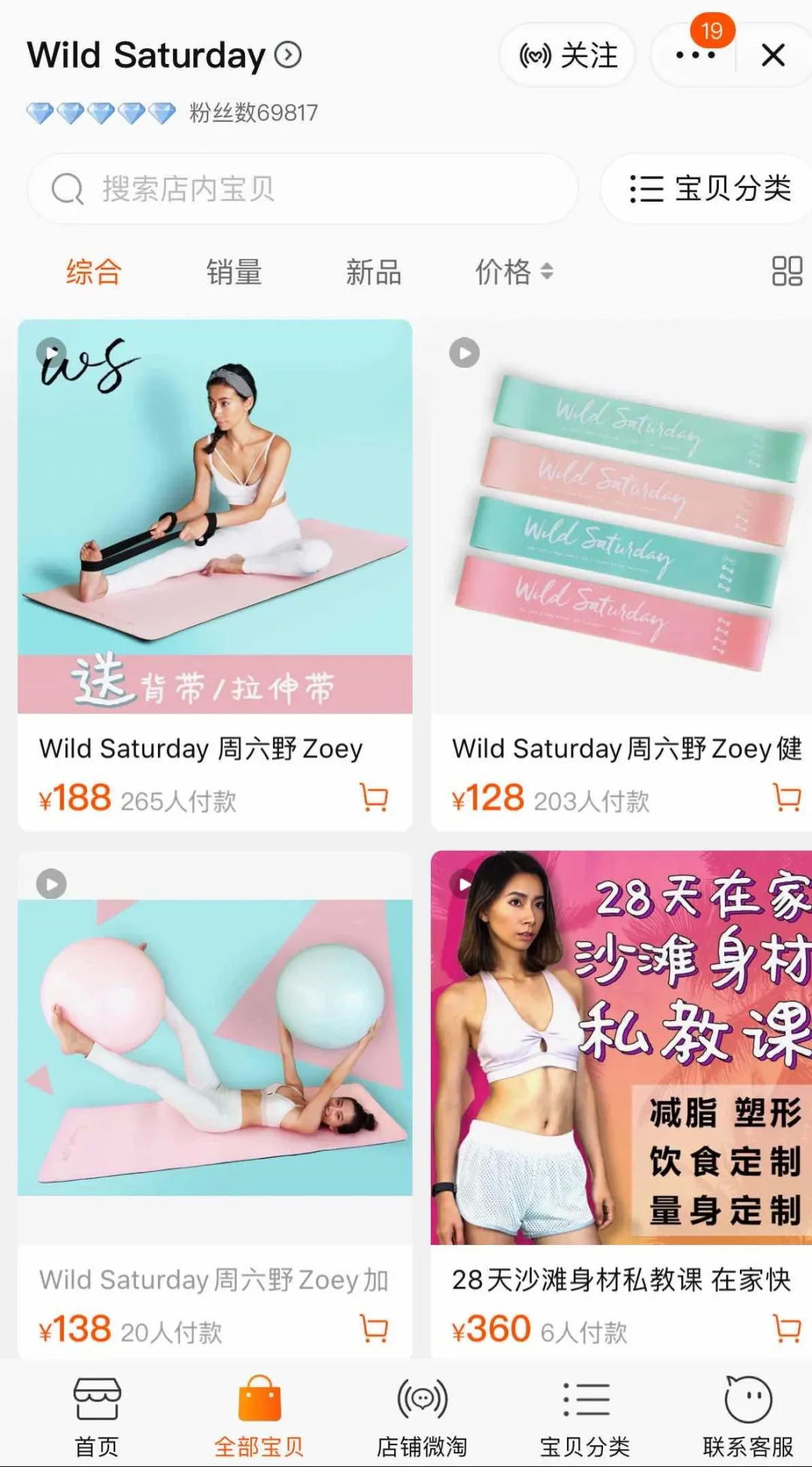 但两年多过去,周六野淘宝店内除了上文提到的价值360元的私教课,仅有3款产品:瑜伽垫、瑜伽球、阻力带。