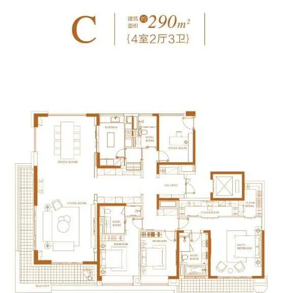 项目规划5栋19-29层高层住宅,总计300套房,户型面积190㎡、230㎡、290㎡。