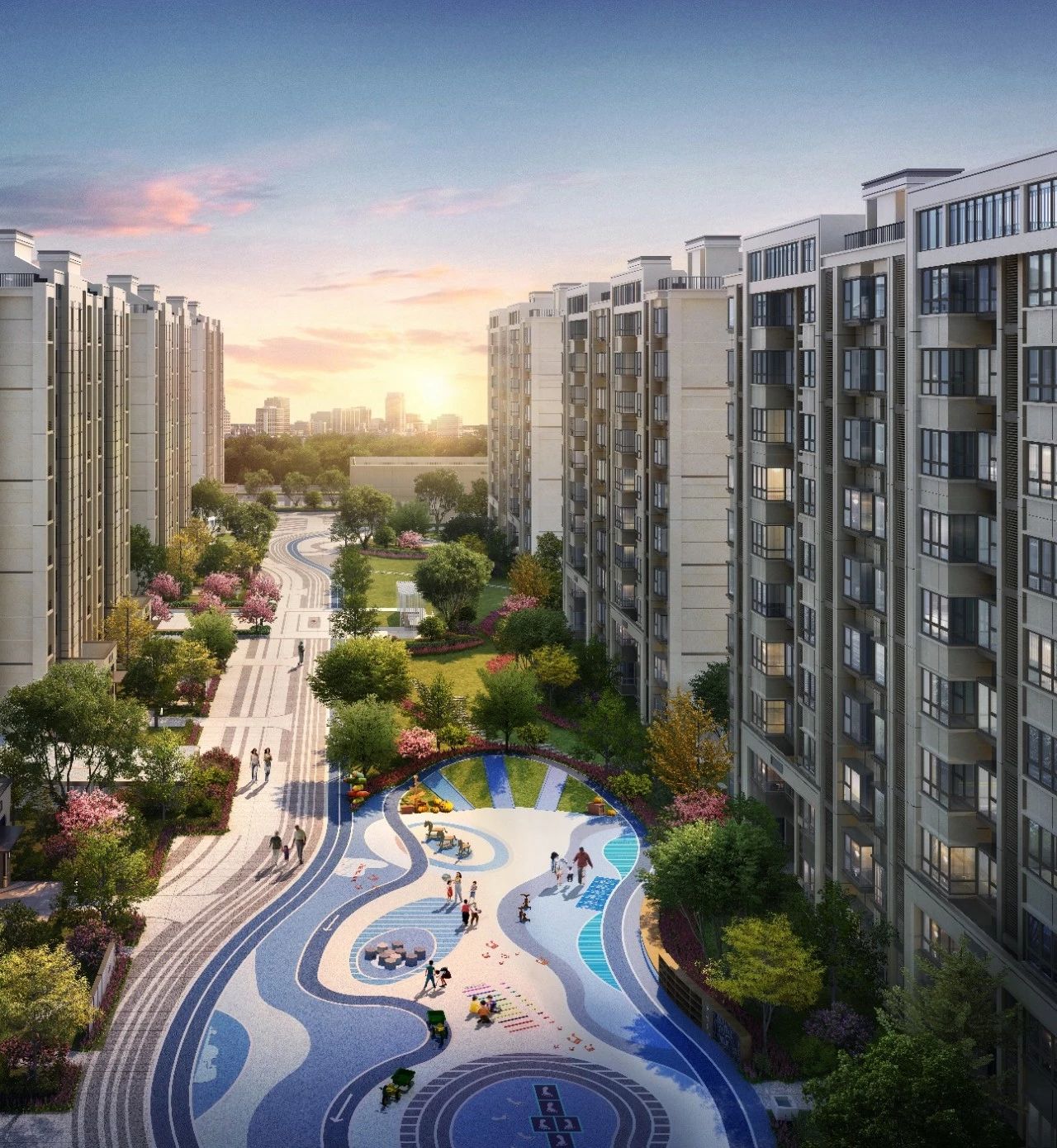 此外,项目打造的园林景观组团,主要体现东方之美,小区内动静分离,有环形场地供业主们运动玩乐。