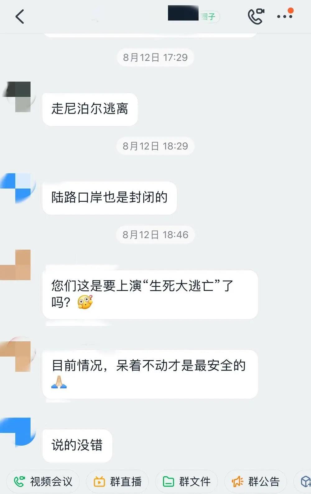 在交流过程中,有人还可以使用微信,有人已无法和家人通话,也有人表示不能聊太久,要用仅剩不多的流量和家人保持联系。