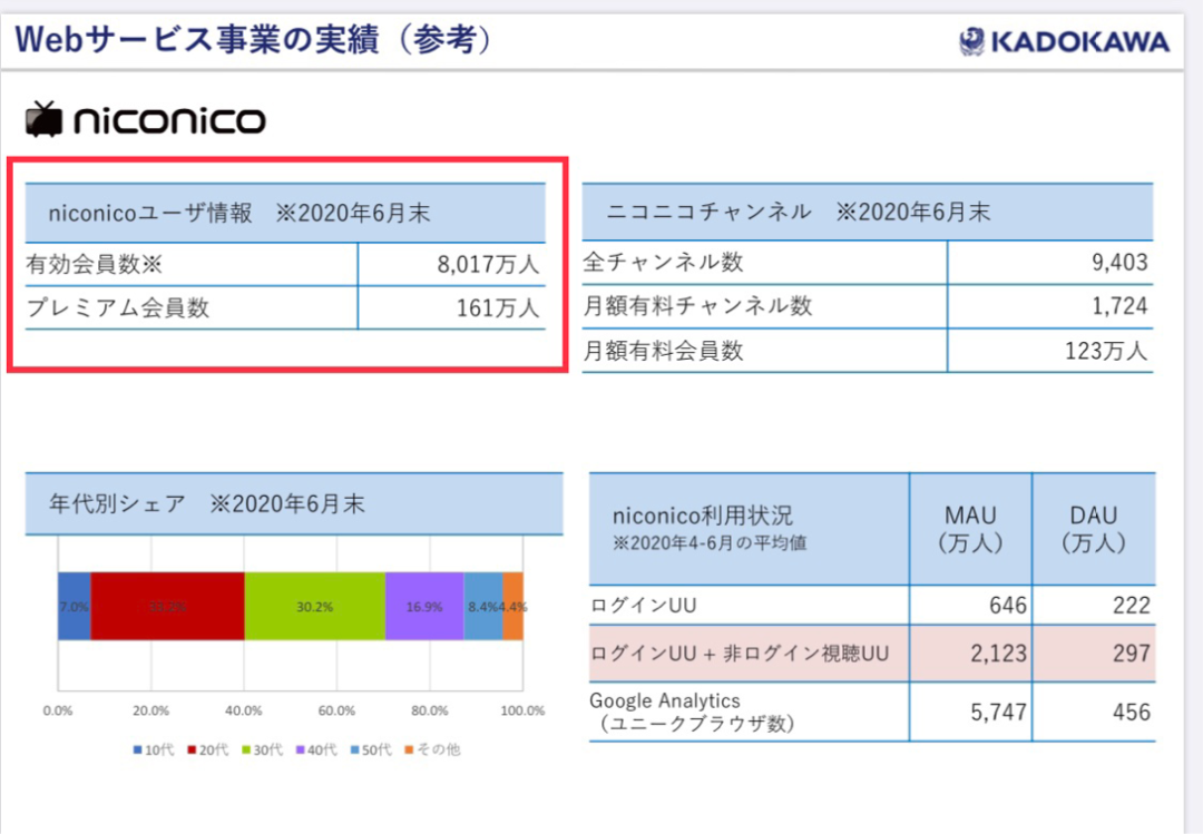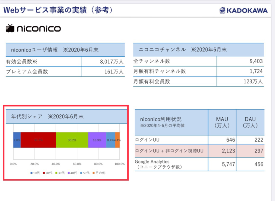 角川集团的最新年报显示:N站40岁以下的用户占70%,其中10-30年龄层的占40%,月活量646万人。这些数据看起来似乎还不错,然而如果与四年做下对比,2016年时N站用户在10-30年龄层的占比有53%左右,月活也高达868万。作为曾深受年轻人喜爱的N站,如今对日本Z世代的吸引力正在下降。