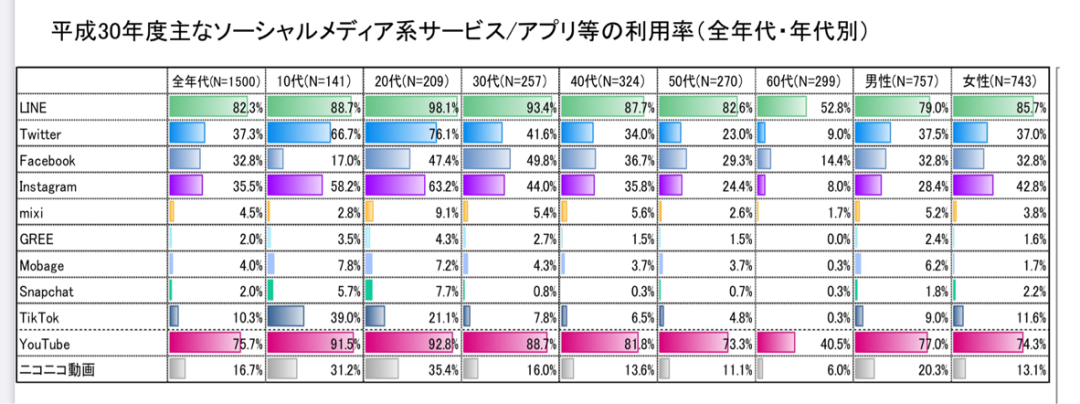 通过日本总务省官方发表的数据,外界可以观察到:N站不仅被YouTube远远地甩在身后,YouTube在10岁-20岁,20岁-30岁这些年轻用户中达到了惊人的90%以上的使用率,而N站仅有三分之一的日本年轻人在使用。在10~20岁年龄区间的日本用户中,N站的使用率甚至还比不过抖音(TIKTOK)。