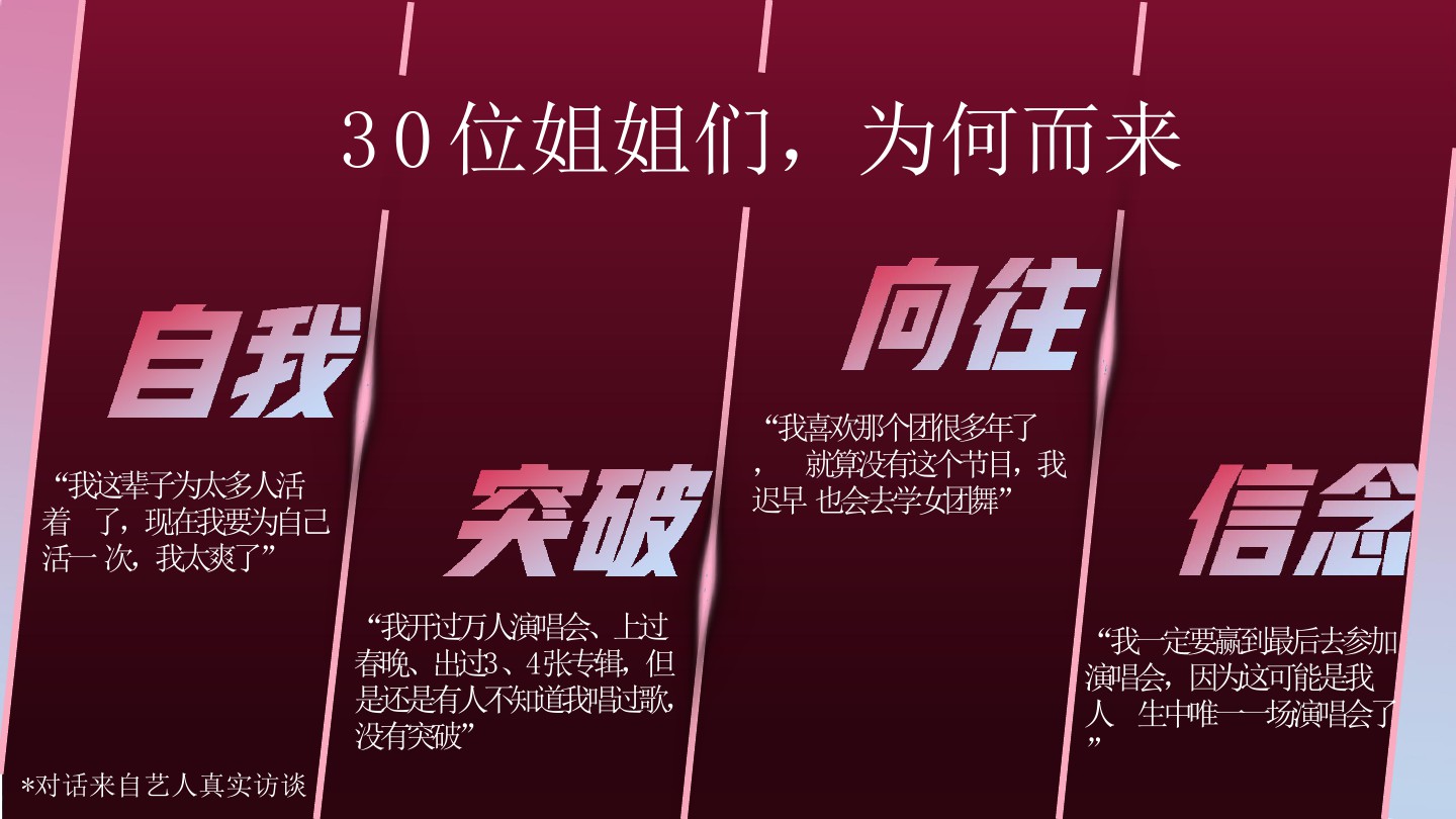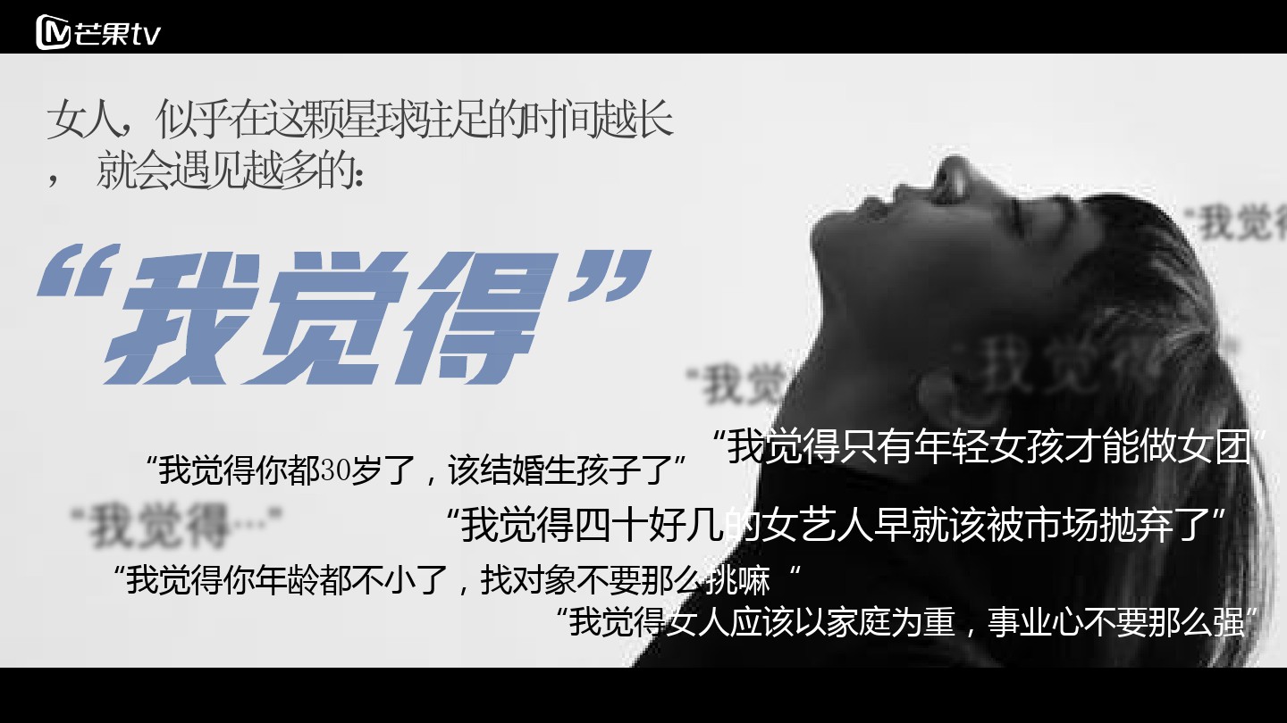 那么,制作一档出道多年的「大女主」的女艺人,作为节目核心卖点,呈现她们面对人生中的得意与失意,以及她们如何看待自身的价值与挑战,怎样突破自我、重新出发,是不是迎合女观众的需求?
