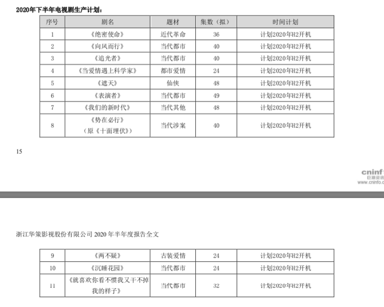 但现在古装大IP的路数不灵了。2018年,口碑不错的《天盛长歌》收视率一路走低,去年暑期档,古装剧《宸汐缘》热度也不及预期。从华策2019年年报公布的当年首播剧集来看,偶像剧已经占据了半壁江山。