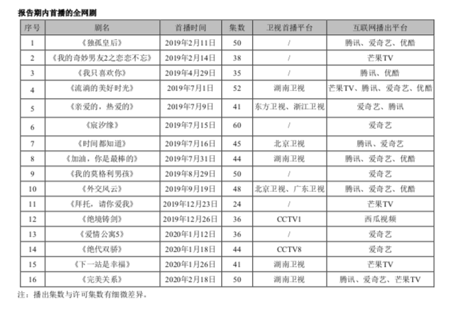 背后的原因是影视行业还在经历调控成本的阶段。华策影视在公告中称,“受行业调整影响,公司 2019 年确认收入的影视剧项目数量减少,单集价格较 2018 年有所下降,同时市场策略也做了调整,主动与下游平台沟通,调整播出,加速消化待播项目,优先确保项目排播和现金回笼,导致2019 年电视剧销售收入较 2018 年减少 25.17 亿元,销售毛利较 2018 年减少 7.61 亿元。”