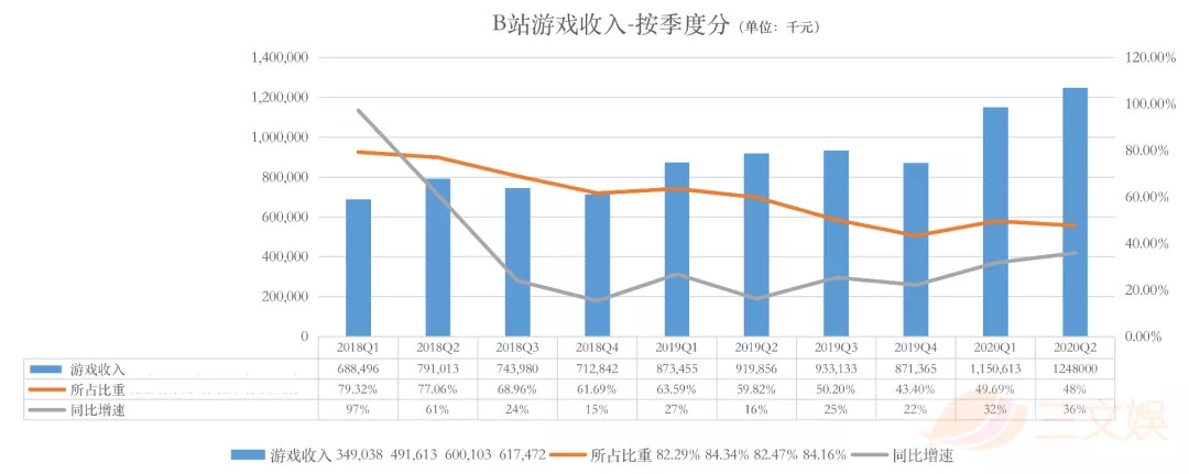今年第二季度,B站游戏业务营收12.48亿元,同比增长36%,占当季总营收的48%。