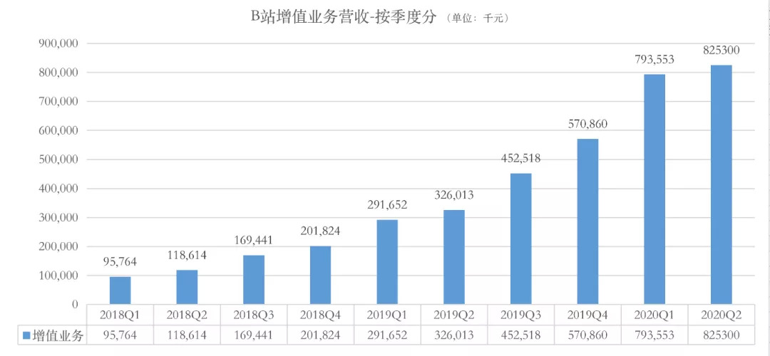 二季度,B站的增值服务营收8.253亿,同比增长153%,季度总营收占比为31.5%,支撑起了B站的非游戏收入。