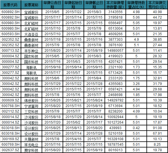 万科宝能股权争夺战引发了市场对“举牌者”的高度关注。其实从今年6月份以来,市场上除了宝能系前后多次高调举牌万科之外,众多机构投资者也爱上“举牌”,不过这些“举牌者”目标多数为小市值的上市公司。其中,今年3月挂牌新三板的中科招商(832168.OC)也加入到“举牌者”的队伍中,旗下中科汇通已集中增持二十几家上市公司,多以“逢低吸筹”为策略对小股本公司进行打包扫货。