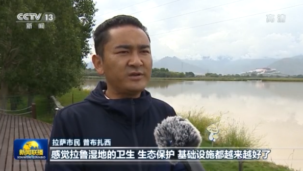 拉萨市民 普布扎西:感觉拉鲁湿地的卫生、生态保护、基础设施都越来越好了,来这里散步、呼吸新鲜的空气,环境好了,我们的幸福感也更强了。