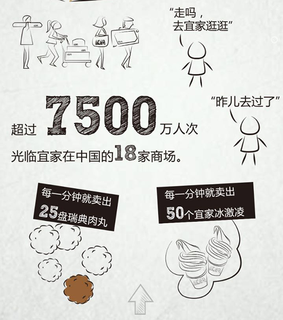 2015年财年(2014年9月1日-2015年8月31日),宜家中国俱乐部会员数量增长了42%,达到1350万人,超过7500万人次光顾过宜家中国商场。他们为宜家中国餐厅贡献了10亿元人民币的销售额。