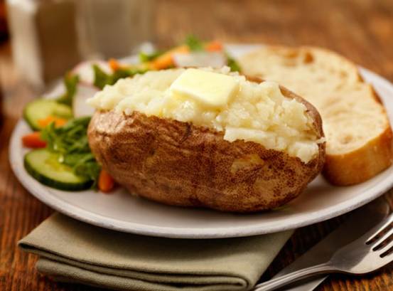 烤土豆曾经在减肥的食谱中,可是后来更多的人们发现土豆的GI值太高,所以烤土豆就从减肥食谱中消失了。越来越多的人们开始了解什么是血糖,也慢慢开始放弃高GI值的食物,当然其中就包括土豆,因为食用过多高GI值得食物会引起高血糖。所以人们慢慢开始食用地瓜,而不是土豆。