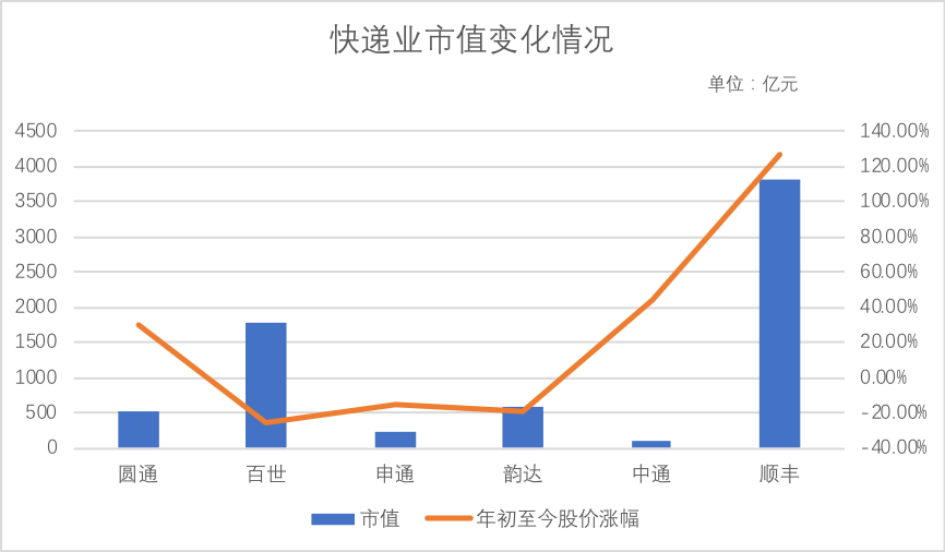 我们先整理了通达系+顺丰今年的市值管理情况,见下图