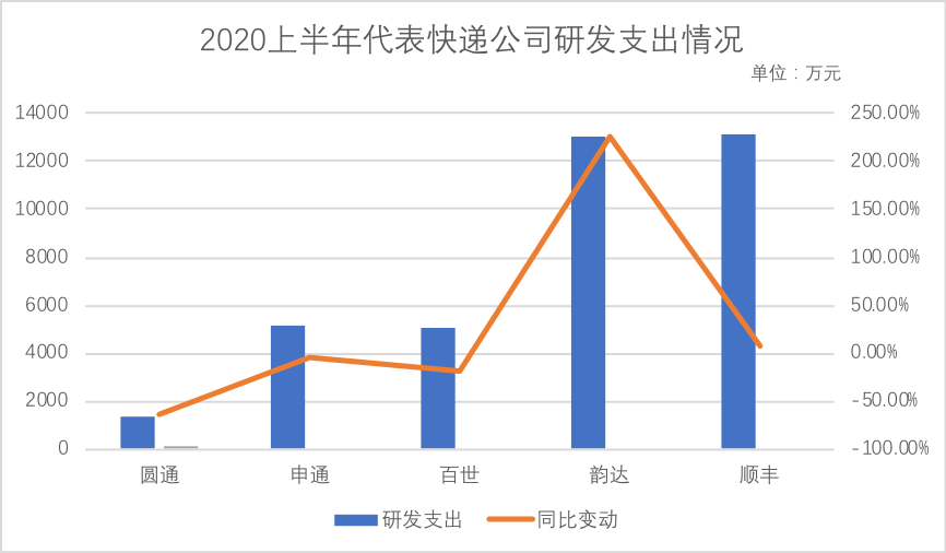 除韵达和顺丰外,其他代表快递企业在上半年均削减了研发支出,经营利润改善的相当大原因在于节省了研发支出。