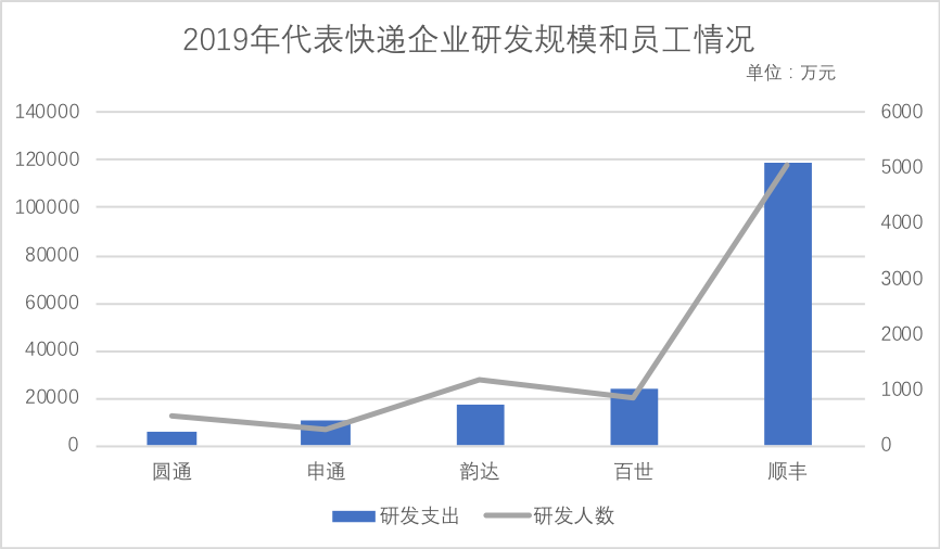 通达系与顺丰最大的不同在于,前者在过去的时间里,与淘系形成了爱恨交织的共生关系,靠淘系订单获得市场规模和资本溢价,但如前文所述在此舒适区内很难以科技感提高效率,根本改善服务品质,获得溢价能力,也就很难追求过高的利润率,更为重要的是,在研发方面丧失的主动权,研发团队沦为“运维人”,我们在2019年财报中发现大多数企业的研发人员的月均薪酬不足万元,怎可能吸引优秀人才,顺丰则有所不同,从运营到研发保持了独立性,未被单一渠道业务所干扰。