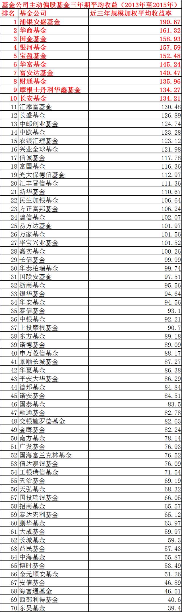 最后看一下近三年的整体牛市中,哪些基金公司平均收益最高。