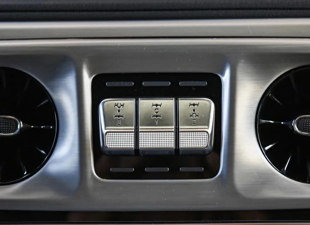内饰设计以及功能配置方面,G350与G500如出一辙,包括像G500配备的全时四驱系统、前、中、后三把差速锁和非承载式车身等硬派越野车的灵魂装备,在G350上也无一缺席。至于像集加热、通风、按摩于一体的前排多功能座椅、柏林之声音响系统、自动泊车等原以为在入门车款会被阉割掉的一些舒适便捷性配置,结果在G350上依旧赫然在列。