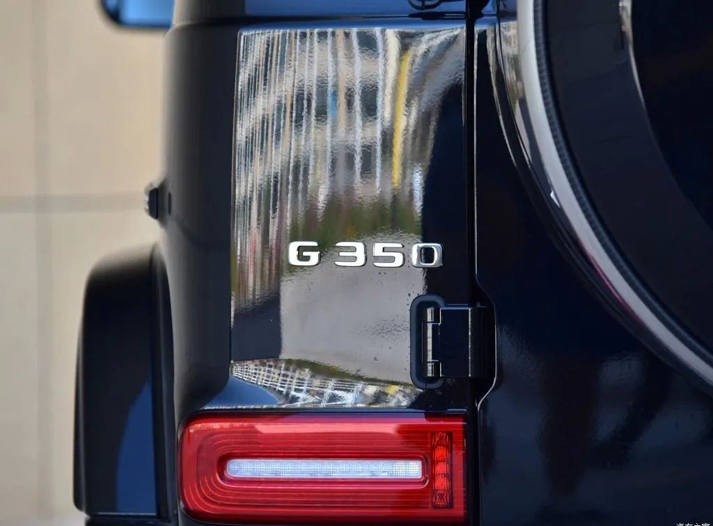 其次,外观方面G350也与G500保持高度一致,比较有意思的是它4866mm车长与G500暗夜特别版相同,而1931mm车宽与G500的初级版和顶配时光铭刻特别版相同,车高则是与众不同的1968mm,轴距同为2890mm,这些差之毫厘的数据让G350看起来与我们熟悉的奔驰大G毫无异样,如果真的需要肉眼把它们区分开来,只能通过新车侧面翼子板取消的V8标识和尾部清晰的G350字样。