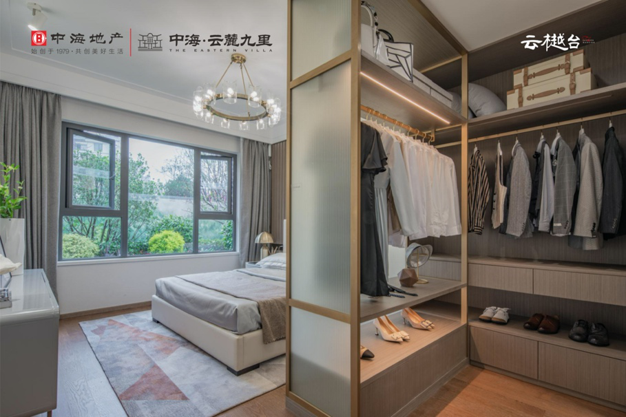 中海·云麓九里【云樾台】,精研居者的空间诉求和居住习惯,于洋房空间之上,以宽境空间为城市高净值人群打造专属的起居空间哲学。套房主卧,空间宽绰,私享独立卫浴空间将室内空间感与功能性发挥得淋漓尽致,整个卧室尽显“雍容尺度,宽敬人生”之感。
