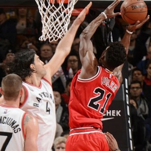 公牛队吉米·巴特勒23投15中得到42分,加索尔19分13篮板,米罗蒂奇17分,罗斯继续缺阵;猛龙队5人上双,洛瑞22分10助攻5篮板,德罗赞24分,斯科拉22分5篮板。巴特勒下半场独得40分,打破公牛球员下半场得分纪录39分,那是乔丹1988年2月17日对阵雄鹿时创造的。