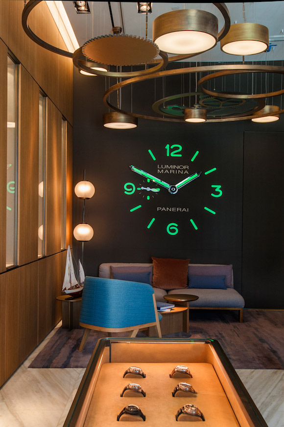 在西班牙设计师 Patricia Urquiola 的主导下,意大利手表品牌沛纳海在美国迈阿密开出的首家旗舰店有齿轮状的顶灯和表面状的背景墙。这让那些对这个品牌还感到有些许陌生的美国消费者一进店就能知道并记住:这是一家品牌高端手表的专卖店。