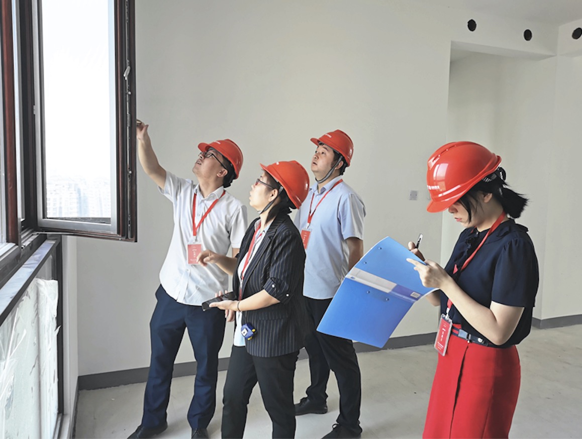 从公共区域装修到户内检验,各验房小组近乎于苛刻,检验标准超出“国家标准”。旭格窗户作为项目一大亮点,验房小组反复开合排查,从专业角度、感官体验上分别检验窗户毛条是否完好、把手是否灵活、开合有无异响、五金件是否平整光滑、纱窗关合是否顺畅无阻等,确保为业主带来更佳使用体感。为确保发现问题全部得到妥善整改,还特别增加复验环节,由销售分公司和工程管理部对各个问题进行复验并逐项核对、查看和封闭。