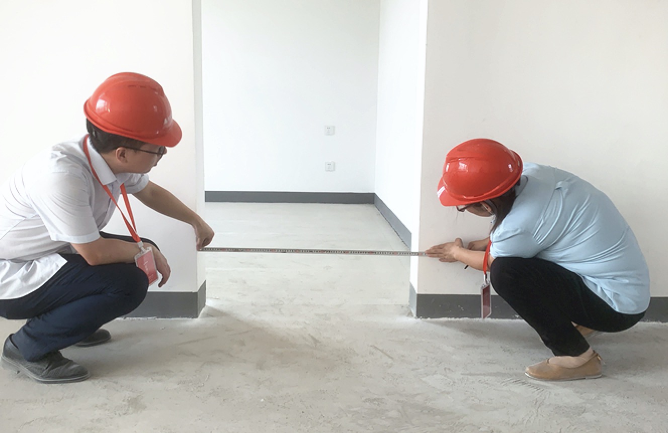 活动抽调公司70余员工分组参与,对白桦林团圆项目全部待交付428套房源各户户内、楼层公区、楼梯间、单元大堂等区域15个方面进行细致查看。墙面地面有无污染,处理工艺是否精细,腻子颜色是否均匀,表面有无皱皮、掉粉等均在验收范围之内。在地面铺装、墙面平整度、管道安装、成品保护等方面更为细微,验房组通过观看、触摸、工具测量等方式,对发现的微小瑕疵、污渍也进行了严格的登记汇总,通过活动为全体员工再夯实品质与细节意识。