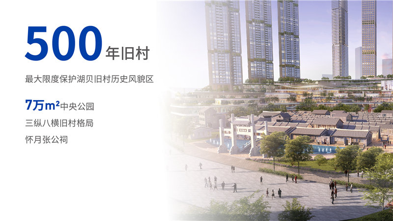 在「有机更新」概念下,华润置地围绕湖贝项目,发布了项目的最新整体规划、五大更新措施及“三个5”的项目亮点——整合周边5条地铁线、活化500年旧村、打造500米城市地标。项目将以71万产业空间,构建深圳东部多元产业聚集的总部基地。