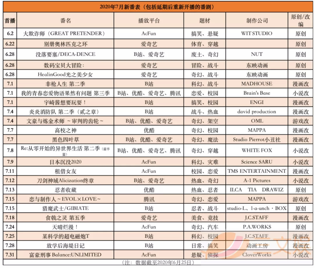 疫情影响了内容制作工期,今年的四月和七月新番有多部作品延期上线。