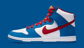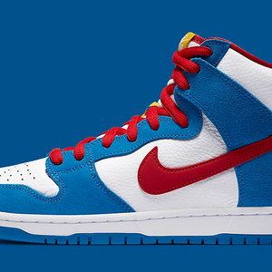 在著名漫画《哆啦A梦》诞生50周年之际,运动品牌耐克(Nike)发布了一款哆啦A梦主题配色SB Dunk高帮款。