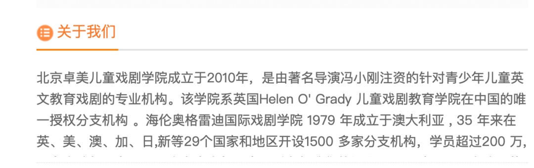 据卓美儿童英文戏剧官网,北京卓美儿童戏剧学院成立于2010年,面向3-12岁孩子提供戏剧+英文学习课程,是著名导演冯小刚注资的针对青少年儿童英文教育戏剧的专业机构。目前在北京有8家小区,上海有3家校区。官网上并未有重庆和青岛校区的介绍。